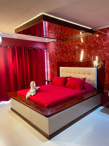 Habitaciones con caño para bailes, sillón del amor, estacionamiento privado, TV cable, canal para adultos, equipo de música con bluetooth, dos tragos de cortesía, y muchas sorpresas más.